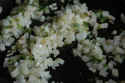 Alanna – obviously this time I used jalapeños (since I've been killing myself trying to use up the 5 lbs my roommate brought home). I seeded and chopped them raw, and added them to the onions in the cooking process. This next time, I'll probably use some of the roasted ones I made.