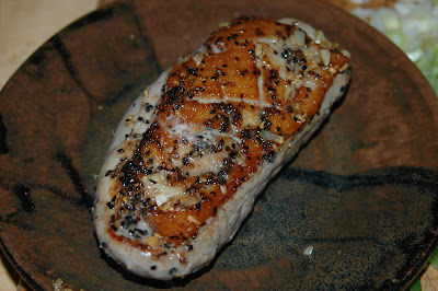 After a few minutes (the duck breast should still be pretty rare – do not overcook it), remove the duck to rest on a plate and cook off the remaining liquid in the pan until nearly dry. Toss in the rice and the scallions and stir until warmed through. At this point you can add more ginger or garlic, if you like a lot of those flavors – I do, personally.