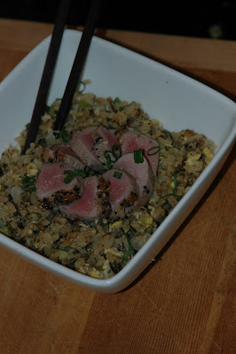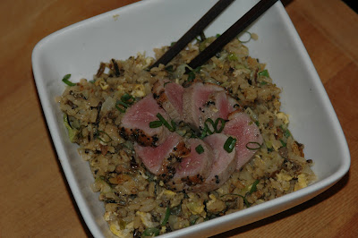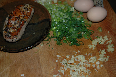 This fried rice recipe can be adapted to any sort of non-sticky rice, and can accept LOTS of substitutions. Had I my druthers, I would have also added sliced water chestnuts, bamboo shoots, and fresh sugar snap peas, had they been available.