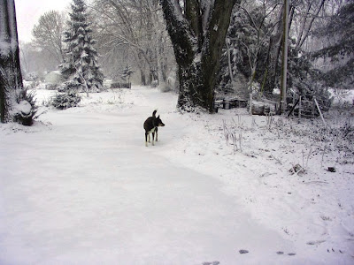 This is Milo, my mom’s husky (?) mix hanging out in the first snow of the year. This is his first year living in snow and from what I hear, he’s in love with it. Milo has spent the last 9 years of his life living in California. This past September they moved to Ohio to a home with 3 acres. He gets to chase deer and squirrels pretty much all the time – two of his favorite pastimes. It’s a life I think most dogs want.