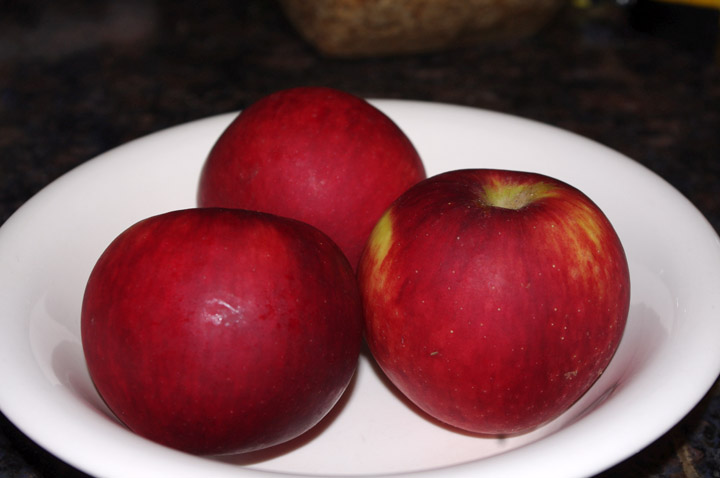 Last weekend on our way back from Mendocino we stopped at an apple orchard stand called Gowan’s Oak Tree Stand. They had dozens of varieties of apples available (but actually grow 60 different varieties), some of which I had never seen before. Some I had only heard of, like the Pink Pearl and Arkansas Black, others I hadn’t. It was the Arkansas Black I wanted to try. I wish I had also grabbed a couple of Pink Pearl apples as well to see their pink flesh – definitely a novelty apple.