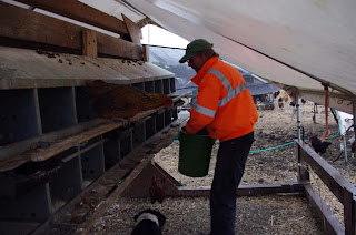 They raise a large variety of egg layers included Ameracaunas, Black Austrolorps, Barred Rocks, Rhode Island Reds, and Delawares. During the height of summer they produce 1,800 eggs a day. But unlike CAFOs, they do not force molt their hens so the eggs are seasonal and the number drops dramatically when the days become shorter. As their egg production goes down the amount of feed the chickens require goes up, which is why pastured eggs cost more than factory eggs.