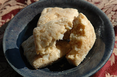 The scones came out fabulously – the perfect size to have one or two with tea. They were moist, with the sweet aroma of pears, but not so sweet that they wouldn’t stand up to a toasting and a slather of salted butter. Hearty and nutty from the whole wheat flour, and just a little bit tart from the buttermilk in the dough.