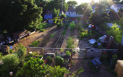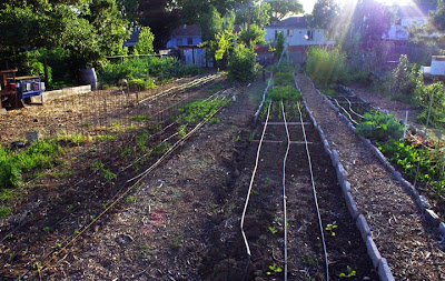 I’m always looking for a good perspective to take photos of the progress of our yard. Unfortunately, in the height of summer, most perspectives are hidden by tall growing plants.Right now the photos work but eventually the corn that’s popping up will completely block any decent views from the above shot.
