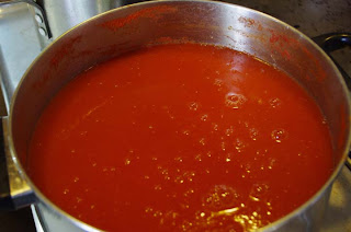 Friday nights are pizza nights around here. Other than making the crust, the sauce is what can take the most time. It also seems a waste to open a quart of tomato sauce to make a cup of sauce so this year we decided to go ahead and can sauce. We put the sauce in 8 oz jars which end up being the perfect amount for one large pizza. It cuts our kitchen time in half by having these little jars.
