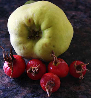1. Put the quince and rose hips together in a large pot. Add water until you can see it just under the top layer of fruit. Bring to a boil.