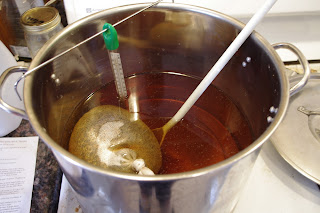 Process:1. In a 5 gallon kettle add 2-3 gallons and grain in grain bag. Heat water with grain to 170 F taking about 30 minutes to do so. If it heats up faster than that, keep it at 170 F until 30 min. is up.
