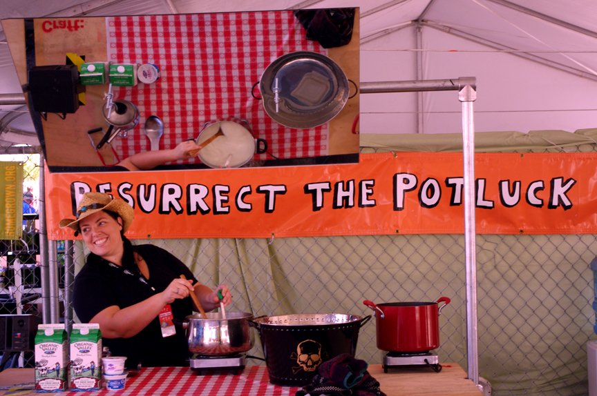 Oh, I think I walked behind you for a ways during set-up this morning- I'm one of the vendors in the Bazaar Bizarre tent. I remember a red wagon with an enormous squash in it, and of course, the pot-luck banner. Wish I'd introduced myself. Looooove your blog, and hope to meet you one day when you can have public workshops and potlucks again!