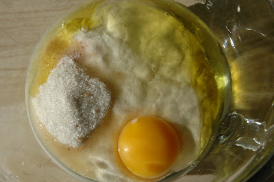 In a large bowl, mix the sourdough start with the salt and sugar. Then whisk in the egg and butter/oil until they are thoroughly combined. I like to keep my sourdough start about the consistency of a thick cake batter, which is perfect for this recipe. If the mixture (with egg and oil added) is still very thick, I sometimes add as much as 1/4 c of milk to thin it out. Otherwise the pancakes can get a little…overwhelmingly doughy.