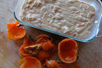I love that this recipe uses yogurt (a quick sweep of banana bread recipes online suggested that this was a low-fat alternative to the more common oil or butter). Personally, I don’t care about the fat content (my banana bread recipe uses both butter AND cream cheese), but I thought the acidity and tang of the yogurt would bring out some of the sweetness of the persimmons and add a depth of flavor. Additionally, the spices are noticeable but not overwhelming: fuyu persimmons have a rather delicate flavor that I wanted to make sure I highlighted, and didn’t overpower.