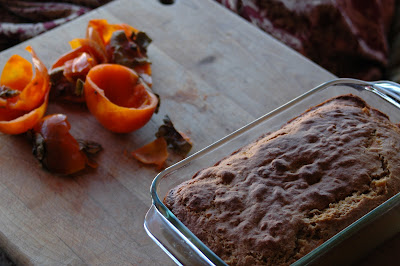 This bread is dense and moist with chunks of soft persimmon (which almost seems candied) flecked throughout. It is guaranteed to please even the staunchest of “EEEW PERSIMMONS ARE SLIMY” critics. Try it. It’s fabulous.