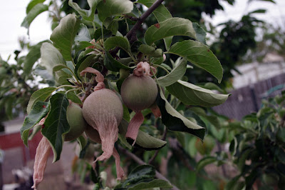 Whenever someone asks why we have pantyhose on our apples and pears Tom responds with “They’re getting ready for a night out on the town.” Yes, it looks a bit odd to have pantyhose covered fruit hanging off of a tree, but I’m telling you it really helps keep the OMG-I-just-bit-a-worm-in-half-while-biting-into-this-apple-surprises to a minimum.